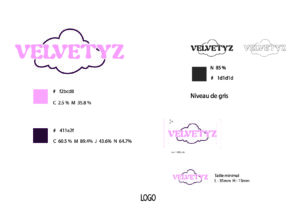 Pour notre projet de marque, j’ai pu développer le logo et l’identité visuelle de Velvetyz, en utilisant Adobe Illustrator pour le design et Adobe Photoshop pour le peaufinage des détails. Ce projet a permis de créer une image de marque distincte et moderne qui reflète parfaitement notre vision.